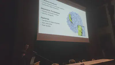 À l’occasion des Journées Françaises de l’Informatique Graphique, le prix de thèse du GdR a pu être remis à Cyprien Plateau-Holleville (XLIM, Université de Limoges) pour sa thèse intitulée « Construction efficace de géométrie pour l’analyse structurelle de grands systèmes moléculaires ».